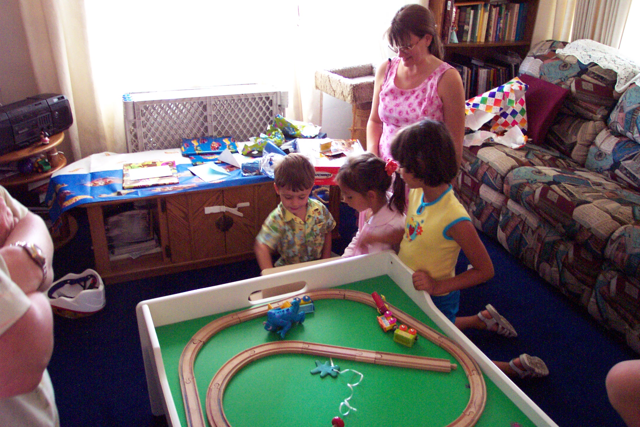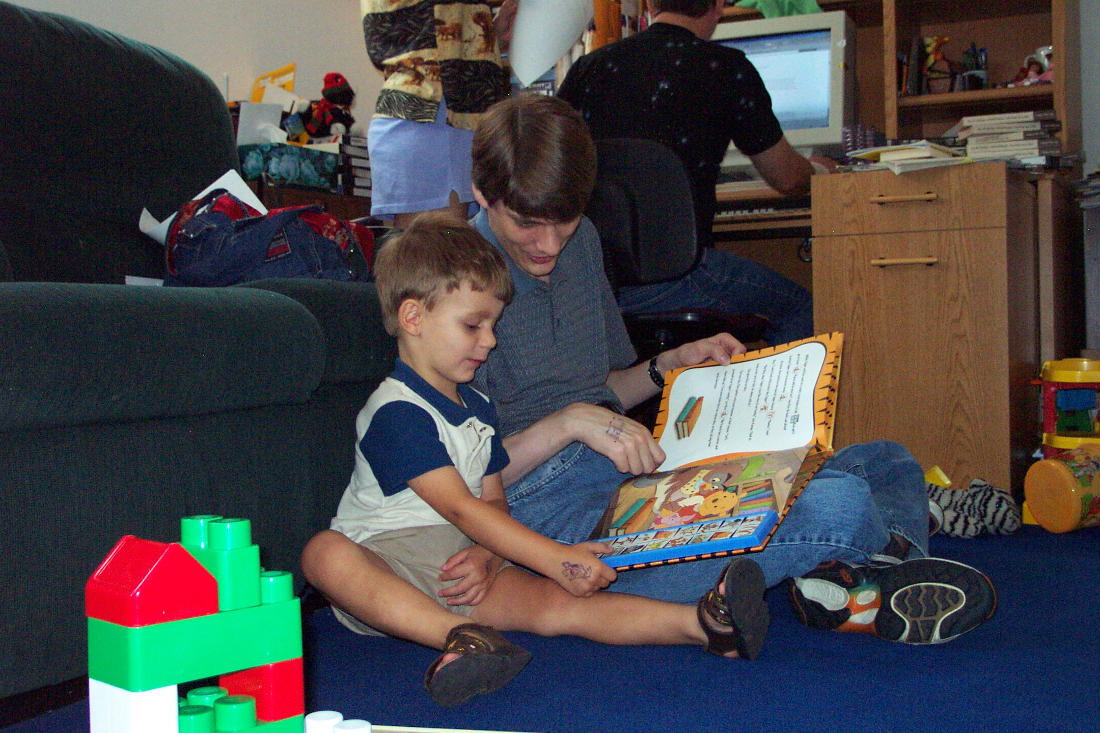 Marshall & Daniel read a book | Alice ponders the camera strap | Marshall helps Daniel build a track |