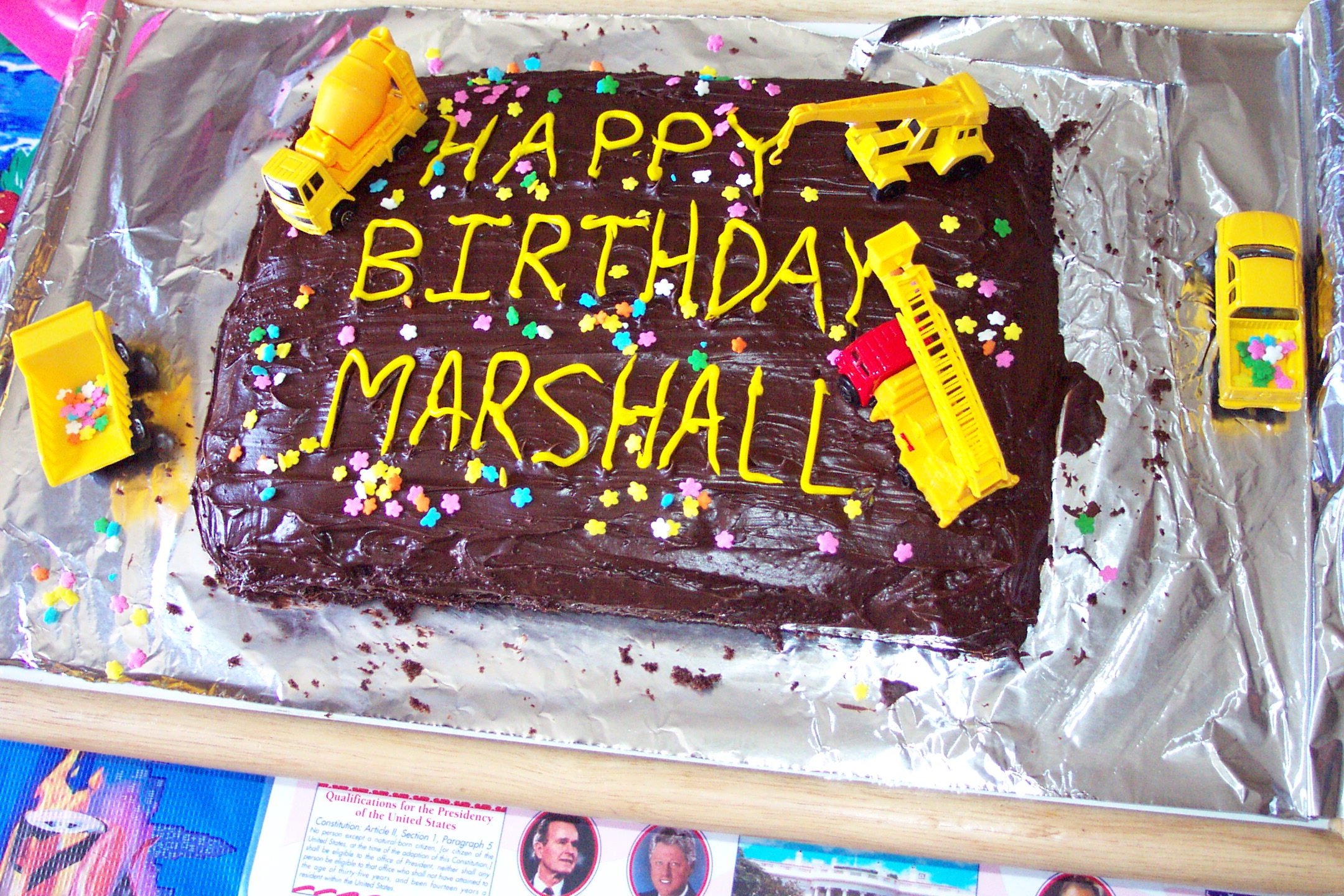 Marshall and his cake & hat | Now we have had sugar & will play | Hammer, Baby & Car |